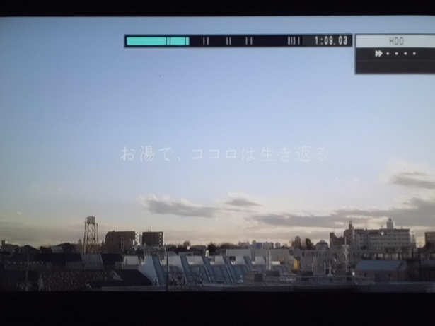 もちろんリモコンの画面表示ボタンで非表示にできるが、CMをスキップする度に通常再生速度に戻るので、その度に倍速ボタンを押さねばならず、その度に画面表示が出るので、画面表示を消す、って作業をしてるとホントいらいらする。