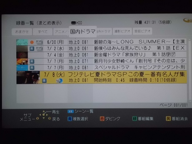 いる、いらないをもう瞬時に判断しなくてはならず、とにかくいらなければその場で消さないと、録画一覧がとんでもない量になります。